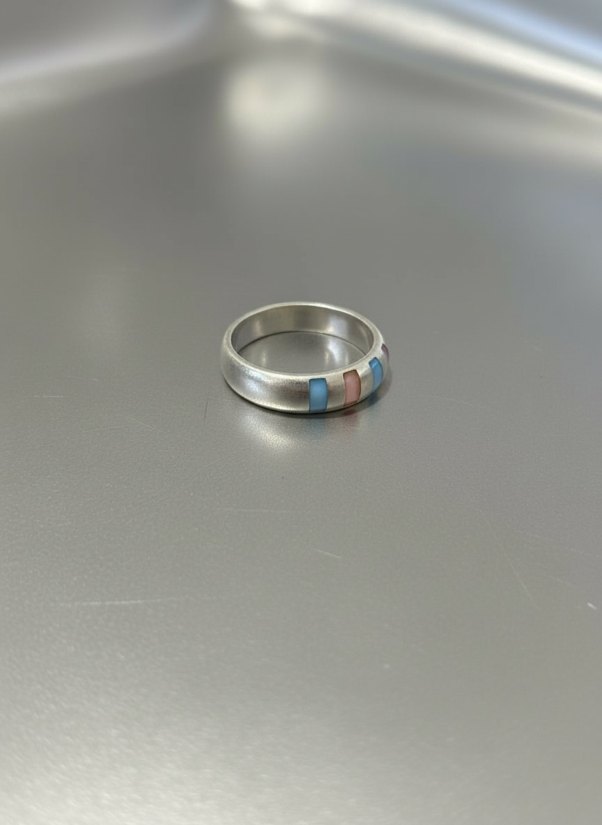 Minimalist Silver Band Ring with Blue & Pink Inlay